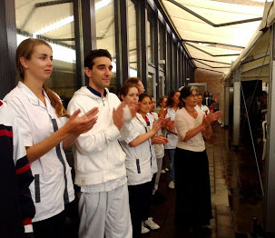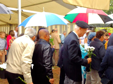 De parapluus waren paraat en het koor zong door. Het was een koor van raffybewoners, aangevuld met enkele anderen aan de bewoners gerelateerd.