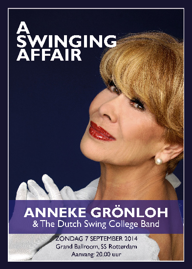 | Op 7 september aanstaande zal Anneke samen met The Dutch Swing College Band, het befaamde jazzorkest waarmee ze in het verleden al vele internationale successen boekte, een galaconcert geven in de Grand Ballroom op de ss Rotterdam te Rotterdam. Als speciale gasten zijn onder meer MARJON LAMBRIKS en LOUIS VAN DIJK van de partij. Na afloop van het concert is er gelegenheid tot dansen op de swingende klanken van The Dutch.Een unieke avond die u niet mag missen.Let op: Er is slechts een beperkt aantal kaarten voor deze bijzondere voorstelling beschikbaar! Kaarten verkrijgbaar via www.nationaletheaterkassa.nl |