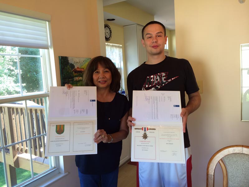 Het mogen ontvangen van de versierselen, al dan niet per post, draagt bij aan een stuk verwerking en geeft erkenning bij de nabestaanden. Ook wij hebben dit mee mogen maken binnen onze familie. Hoe belangrijk is het voor hen gebleken te weten wat er met hun dierbare is gebeurt. Dat wij hierin een bijdrage kunnen leveren zodat u dit voor hen op papier kan zetten, de verzoeken in kan dienen, vergt veel tijd en energie. Een pluim voor uw doorzettingsvermogen op uw hoge leeftijd en positieve instelling. Onze felicitaties betreffende Hendrik Wladimir Emile Engelen, zijn dochter Jeanine hebben we al even persoonlijk gefeliciteerd.