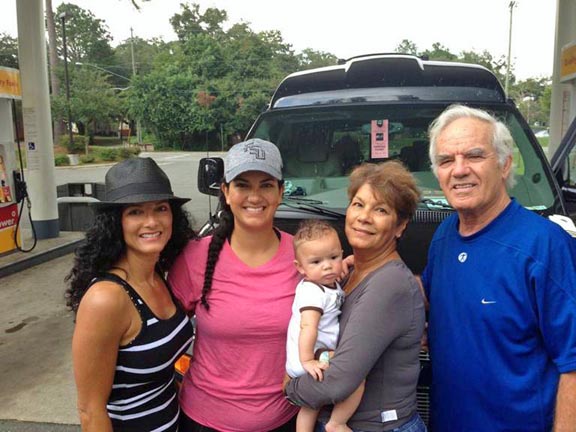 Jessica van der Linden, van Indische komaf, was 10 jaar geleden absolute top in het Amerikaanse softball. Foto : Jessica in rose shirt met haar baby en ouders.