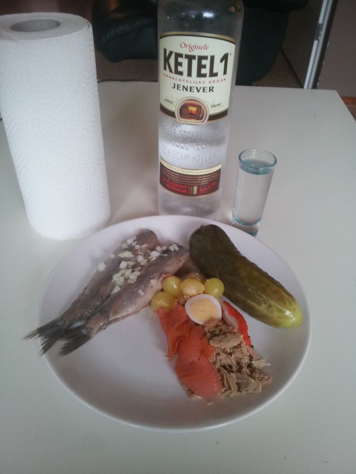 ron26septvandaag vrij genomen….paar harinkies met de poesjes gedeeld en een zalmsalade met zure bom….met een heerlijke borrel, rijd ik geen meter meer en wacht ik nu op mn meissie. die allemaal lekkers meeneemt….kep hongerrrr….