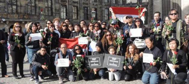 Tientallen Indonesiërs kwamen zondag 5 oktober 2014 bijeen op de Dam in Amsterdam om ‘afscheid te nemen’ van de rechtstreekse verkiezingen in Indonesië.
