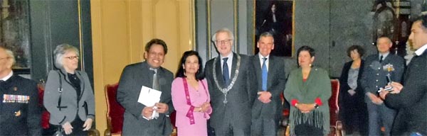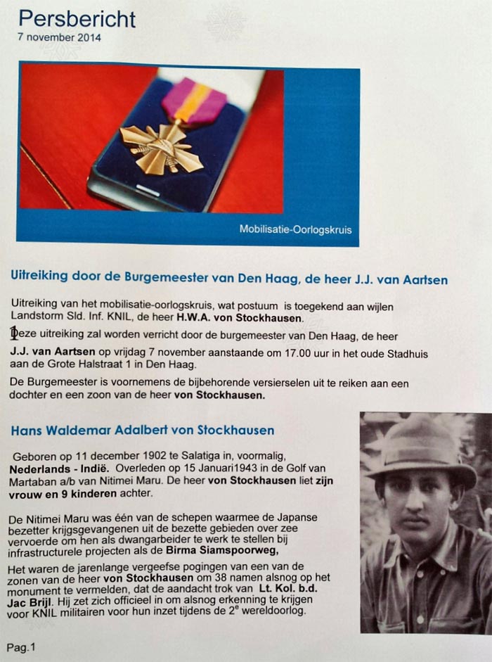 Kinderen von Stockhausen ontvangen van de burgemeester de onderscheiding.