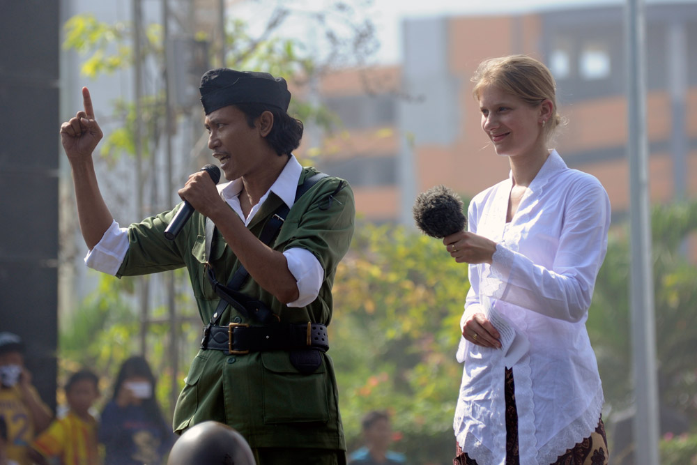 quote haar mail:  Naast een radioverslag van de Parade heb twee andere verhalen uitgezocht en sprak ik o.a. met Ibu Risma de burgemeester van Surabaya en ook ontmoette ik de Indonesische minister Indroyono (Maritieme Zaken.) In de komende maand zal ik de radio reportage uitwerken. Hierover te zijner tijd meer.   Als voorproefje alvast een korte video-impressie van ‘de slag om Surabaya’ anno 2014.    (film)