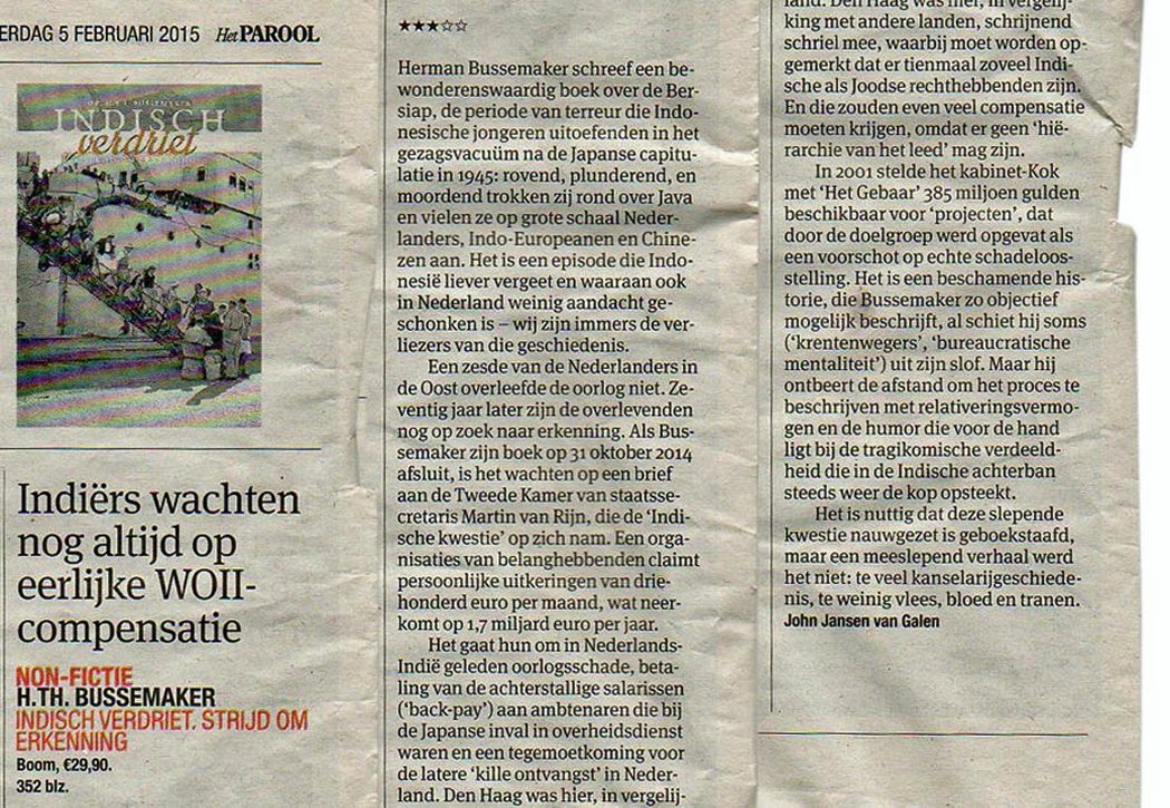 Eerder deze week was er een recensie van het boek Indisch Verdriet in de Volkskrant. Klik op het onderstaande plaatje