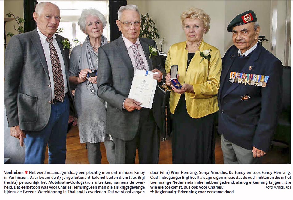 De aan je vader postuum toegekende onderscheiding is zoals je weet, nu onderweg naar de USA! Ik hoop daarom, dat de Ned. Honorair Consul in LA, in overleg met jou, het “kleinood” zo spoedig mogelijk aan je officieel en eervol zal kunnen uitreiken!