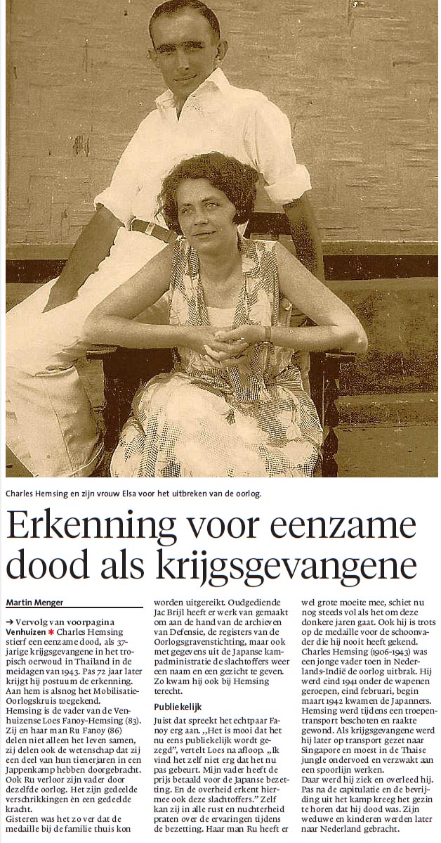 In dit verband wil ik ook niet onvermeld laten de inspanningen van Sijtje en Nana Jeekel die een prachtige bijdrage hebben geleverd in “Het verhaal verteld ” in het register van de Oorlogsgravenstichting.