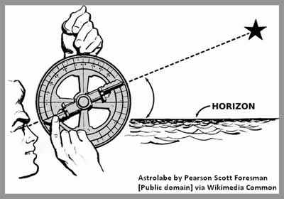 *) Astrolabium: een toestel waarmee plaats en hoogte van een hemellichaam berekend kan worden als functie van de tijd. (bron: Wikipedia)