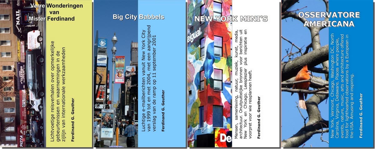 Mensen, samenleving, natuur, muziek, kunst, media, architectuur. Onuitputtelijke bronnen voor berichten uit New York en Chicago. Leesplezier plus inspiratie en voorpret voor wie reisplannen heeft.