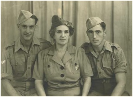 In maart 1946 kwamen de oorlogsvrijwilligers (OVW-ers) van 2-5 R.I. aan in Soerabaja. Zij werden in de beginperiode tijdens de nachtelijke uren in tweetallen bij families ingekwartierd om hen te beschermen tegen rampokkers. Bertus Kwertus (links) en Daan Baan (rechts) kwamen terecht bij het gezin van mevr. Elisabeth (Betty) Heuwinkel – van Voorthuijsen (midden). Na deze periode waren beiden tijdens hun verlof in Soerabaja altijd welkom bij deze vriendelijke en gastvrije vrouw. Haar echtgenote was manager van enkele bioscopen in Soerabaja en na afloop van hun bezoek kregen ze ook altijd een aantal gratis bioscoopkaartjes mee voor hun kameraden. Bij repatriëring naar Nederland in 1948 brachten de militairen voor haar een kist met waardevolle spullen naar familie in de omgeving Hilversum. Vanuit Nederland bleven de OVW-ers nog enige tijd contact met Betty Heuwinkel – Voorthuijsen, maar na enige tijd stopte dat.