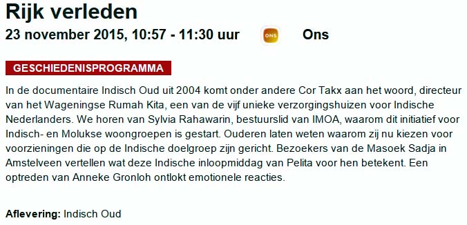Toen wij Indo’s in NL kwamen, werden wij letterlijk als tweede rang burgers behandeld. En dat gebeurde zowel in gedrag als in betaling. Nu nog zijn vele zaken niet tot op onze tevreden afgehandeld. En dan gaan er een paar met een krom taaltje van onopgeleide Indo’s de hele Indische gemeenschap omlaag halen. Mij ontbreek daar het respect voor.