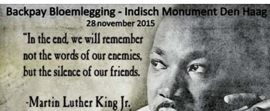 Ik als voorzitter van Maluku4Maluku roep een ieder op, om op zaterdag 28 november 2015 een bloem te gaan leggen, of een kaarsje te branden bij Nederlands-Indië Monument Den Haag.