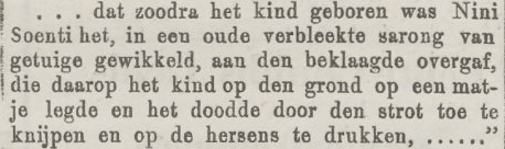 Is dit gebeurd in en rond een Indische familie (Indo-Europeanen)? Volgens antropologen kwam kindermoord helaas – als inlandse adatvorm – “in den Maleischen Archipel” – voor. Al werd dat toentertijd verboden door de Nederlandse staat en christelijke zending. Zie het boek: Kindermoord in den Indische Archipel, door J.P. Kleiweg de Zwaan, rond 1900. Hieruit de volgende citaten: