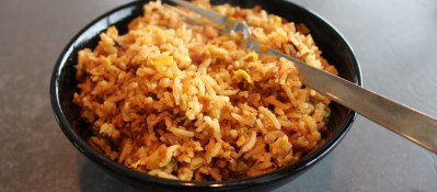 beste rijst voor nasi goreng is die van de de dag ervoor, die makkelijk loskomt met een vork.