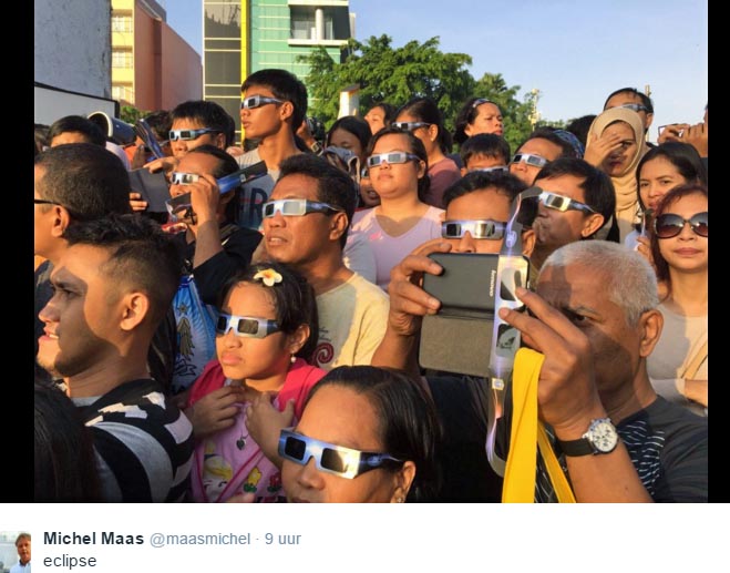 NU.nl: Miljoenen mensen hebben woensdag in Indonesië een zeldzame complete zonsverduistering gezien. Op sommige plekken was het voor het eerst in 33 jaar volledig donker.
