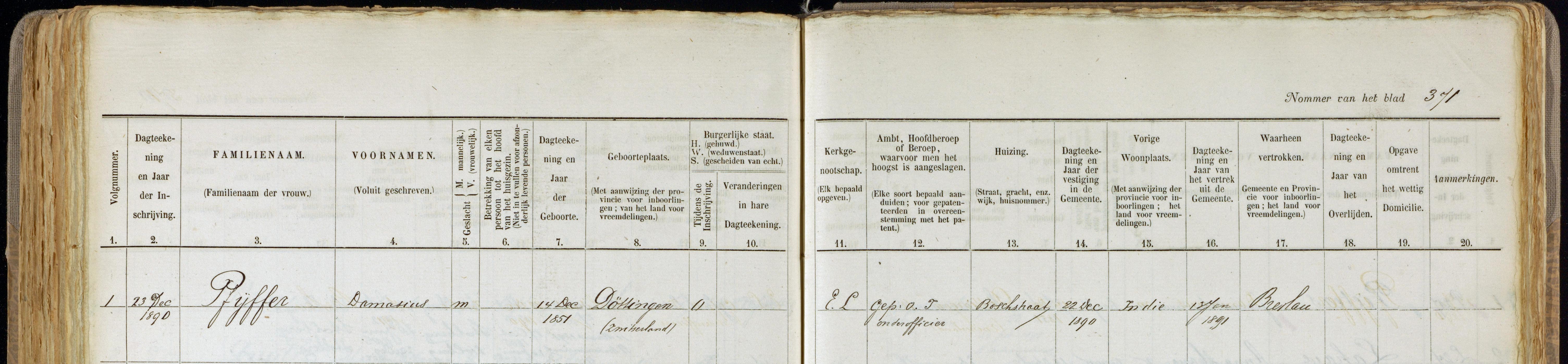 Damasius Pfijffer is de vader van Louisa Magdalena Pfijffer. Louisa was getrouwd met Adolf Günther. Na lang wachten en speurwerk ben ik informatie tegengekomen over deze meneer, mijn Betovergrootvader. Op 22 Dec 1890 heeft hij zich ingeschreven in Maastricht (Boschstraat) vervolgens uitgeschreven op 13 Jan 1891. Hij heeft nog geen 3 weken in de Boschstraat gewoond en is toen verhuisd naar Breslau (Wrocla Polen). Hier eindigd de zoektocht, tot dusver.