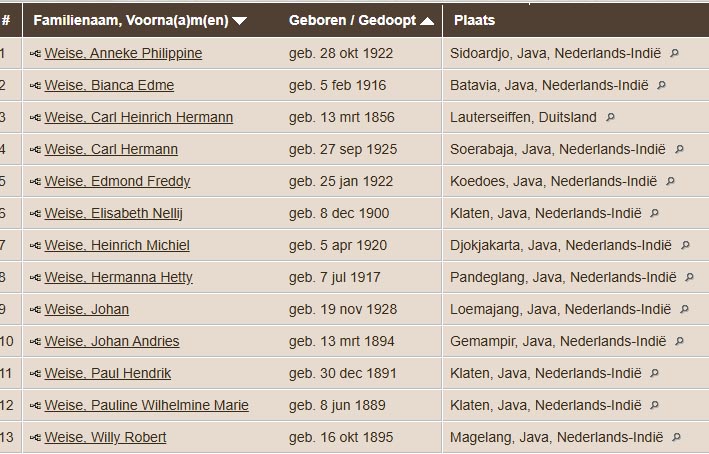 Toen huwde 13 -8-1904 te Klaten Carl Heinrich Hermann Weise met de Inlandsche vrouw Sinah. Carl overleed 21-12-1921 in Djokjakarta