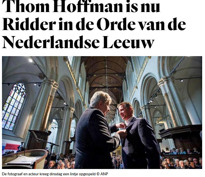 Het lintje voor de verdiensten van Thom Hoffman, “Ridder in de orde van de Nederlandse leeuw”.