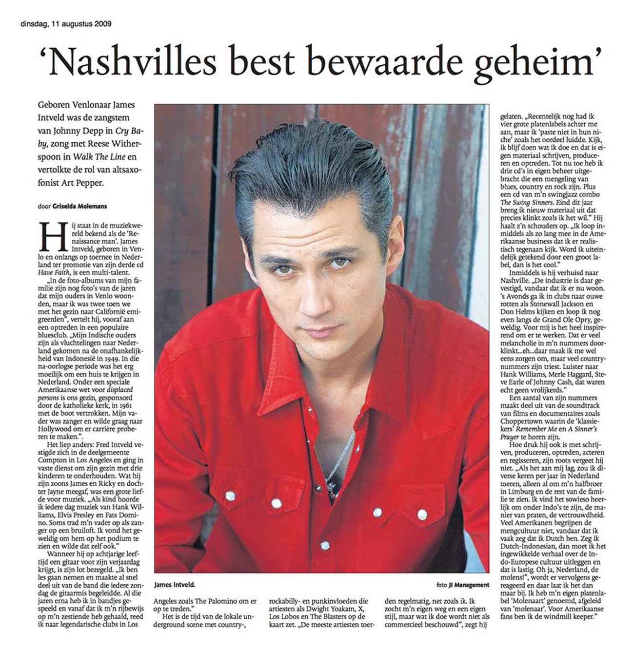 Uit de Verenigde Staten, om precies te zijn Nashville, komt de eigenzinnige singer-songwriter en rockabilly-muzikant James Intveld. Hij komt speciaal voor de 58e Tong Tong Fair naar Nederland voor twee concerten op 28 en 29 mei.