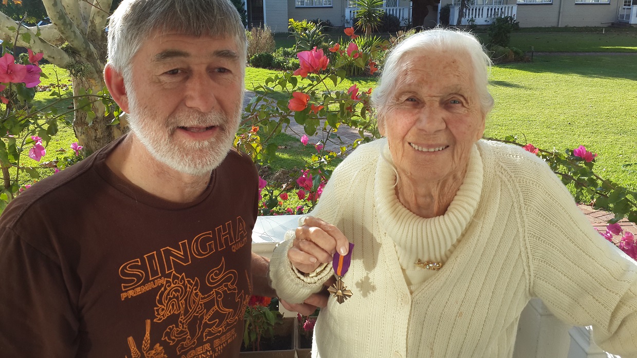 Foto onder: De zuster van Michael van Zeyl ontving het Oorlogskruis
