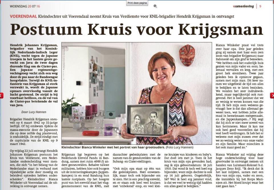 Ik wil tevens Boeroeng van harte bedanken, voor de prachtige wijze waarop de gebeurtenissen rond wijlen Brig. Inf. KNIL Hendrik Johannes KRIJGSMAN heeft weten samen te vatten en in I4E heeft gepubliceerd. Chapeau!