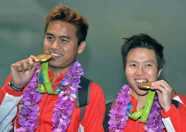 ** Indonesian Olympic gold medal winners Tontowi Ahmad and Liliyana Natsir were given a hero’s welcome Tuesday