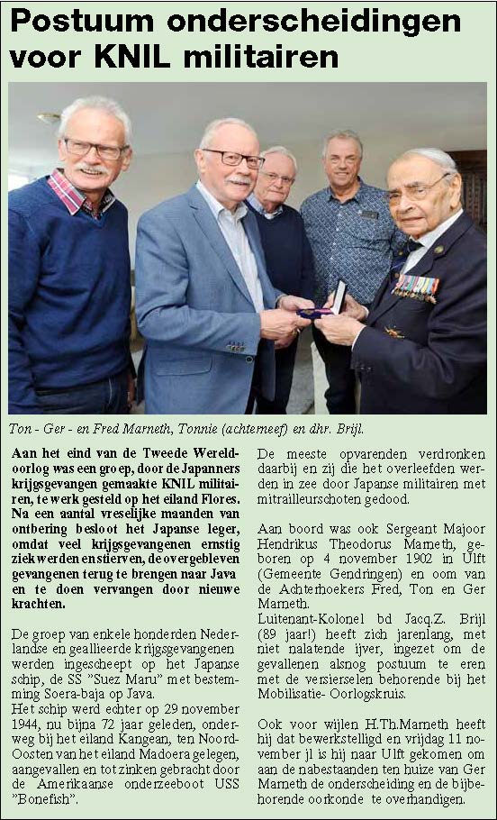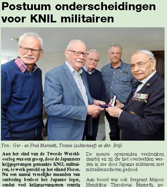 Op 17 november heeft de heer J. Verhallen door burgemeester A.A.M. Brok twee onderscheidingen uitgereikt gekregen. Het gaat om het Mobilisatie Oorlogskruis en het ereteken Openbare Orde en Vrede met jaargespen 1946. De heer Verhallen krijgt deze eretekens uit erkenning voor zijn werk als KNIL-militair.
