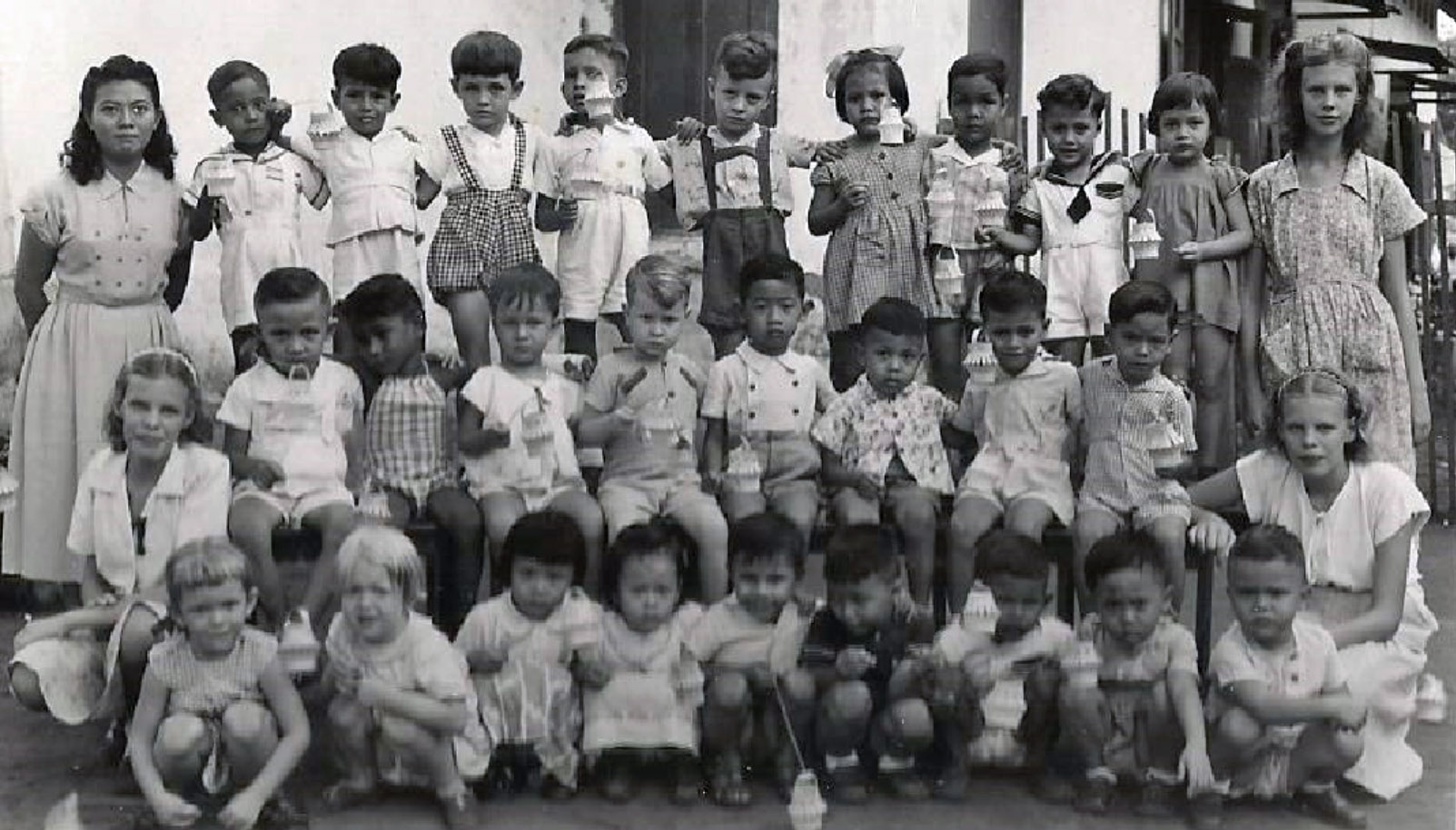 In ongeveer 1951 heb ik een aantal jaren in de jalan Raya Gubeng (Gubeng Boulevard) gewoond en zat op de kleuter/frobel school. Ik ben op beide foto’s vermeld. Weet iemand zich deze scholen te herinneren en wie zijn je juffrouwen? Het moet de Gubeng school en/ of de Lombok school zijn.