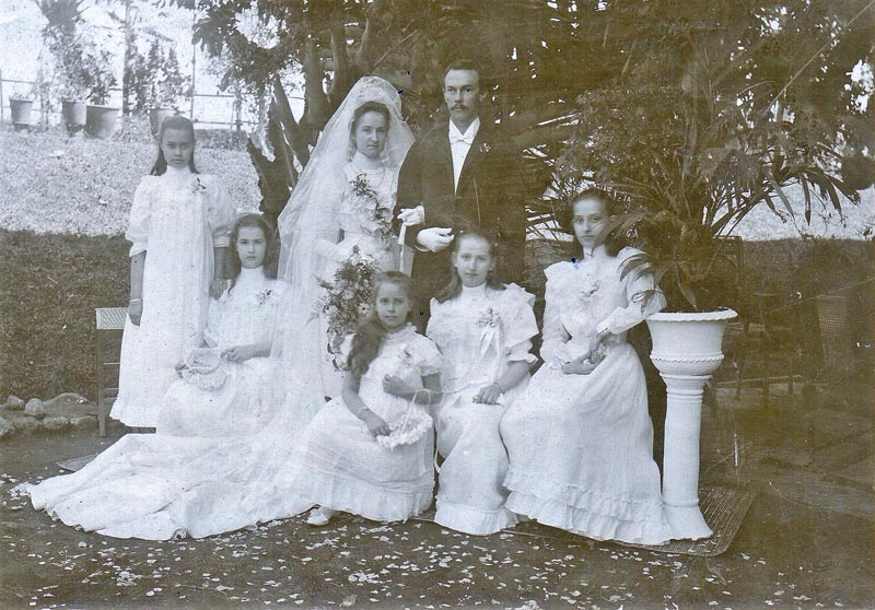 Mail : In mijn bezit een foto van het huwelijk van Adolf Eduard Ament (geb. Pasoeroean 17 sept. 1875, zn. van Jan Abraham Ament en Carolina Justina van Beusechem), tr. theeonderneming Goenoeng Hedjo (Krawang, Batavia) 7 juli 1902 met Anna Henriëtte Boutmy ( geb. Buitenzorg 4 aug. 1880, dr. van George Boutmy, administrateur Goenoeng Hedjo en Jacoba Cornelia Bijleveld).