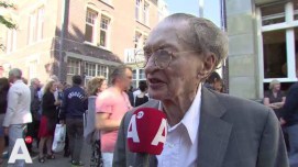 Regels uit het verzetsgedicht ‘Iemand stelt de vraag’ van schrijver Remco Campert staan vanaf vandaag op de zijgevel van uitgeverij de Bezige Bij aan de Van Miereveldstraat. Campert onthulde het gedicht zelf. De oorlog speelt nog altijd door zijn hoofd, zegt hij. AT5