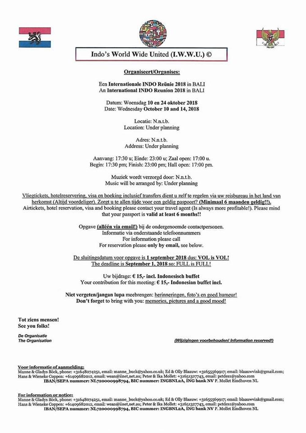 Het lijkt mij dat voor Nederlandstalige Indo’s en engelstalige aparte data zijn gepland. Ze moeten elkaar toch nog een beetje kunnen verstaan. Voor Petjoksprekers zie ik helaas niets geprogrammeerd.