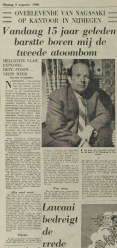 70 years ago my father, Eef Schouten, wrote history in Nagasaki Japan.  He was one of the few victims that survived the Atomic bomb. As a soldier, from the Royal Dutch Indonesian Army, he was captured by the Japanese army when they invaded Indonesia.