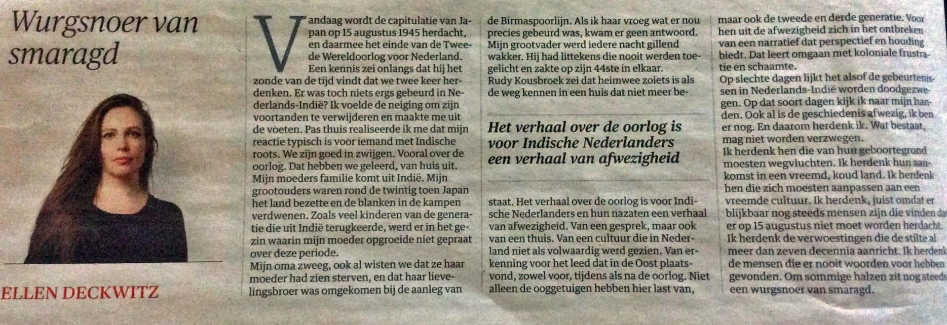 Ach ja, als je kruiperigheid wilt zien zie je kruiperigheid. Als je iemand een vervelend mannetje vindt, zie je een vervelend mannetje. Mag gelukkig allemaal in Nederland. Kun je lekker in je eigen hokje blijven. Ik snap het helemaal dat veel Indo’s het niet naar hun zin hebben in Nederland. Vergeten wordt dat je op 15 augustus alleen maar even je hoofd moet buigen. En even stil zijn.