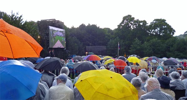Den Haag. De 71-jarige Tom Boon von Ochssee uit Zoetermeer, geboren in Bandung, is gekomen om zijn ouders en grootouders te herdenken. Zij zaten tijdens de oorlog in een jappenkamp. Van zijn moeder hoorde hij de verhalen: „Ze had onthoofdingen gezien – alles.”Grote druppels rollen over zijn plastic regencape, waaronder militaire medailles zichtbaar zijn. Het zijn de bewijsstukken van zijn werk bij de nationale reserve.
