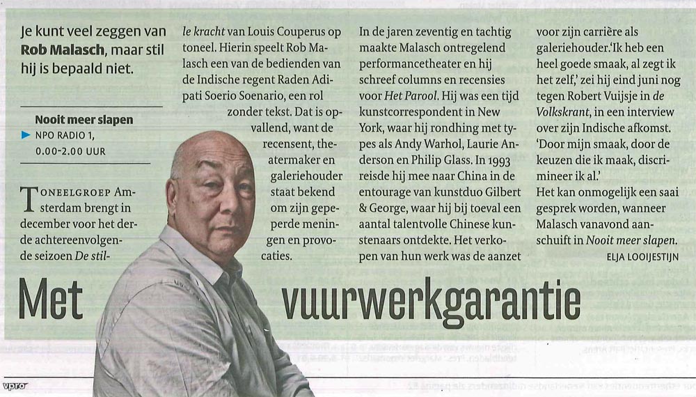 4 sept 24.00 radio 1….. Nooit meer slapen met Rob Malasch