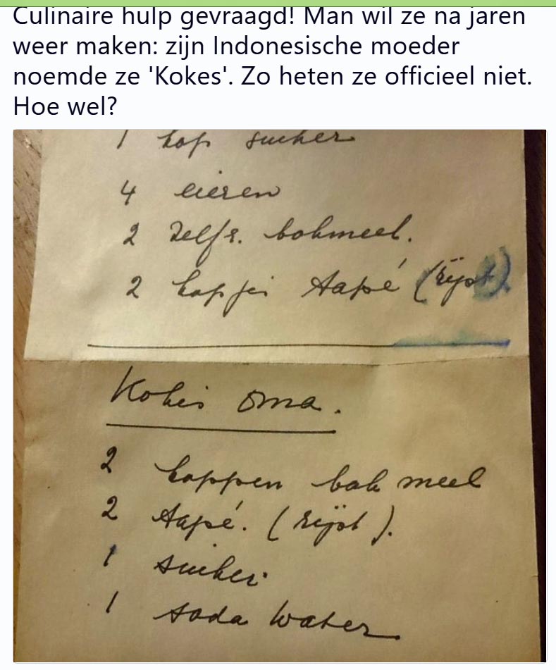 Lijkt wel n recept van mijn oma (Neijhoff). Ze heten niet kokes, maar kokis. Kokis tapé.