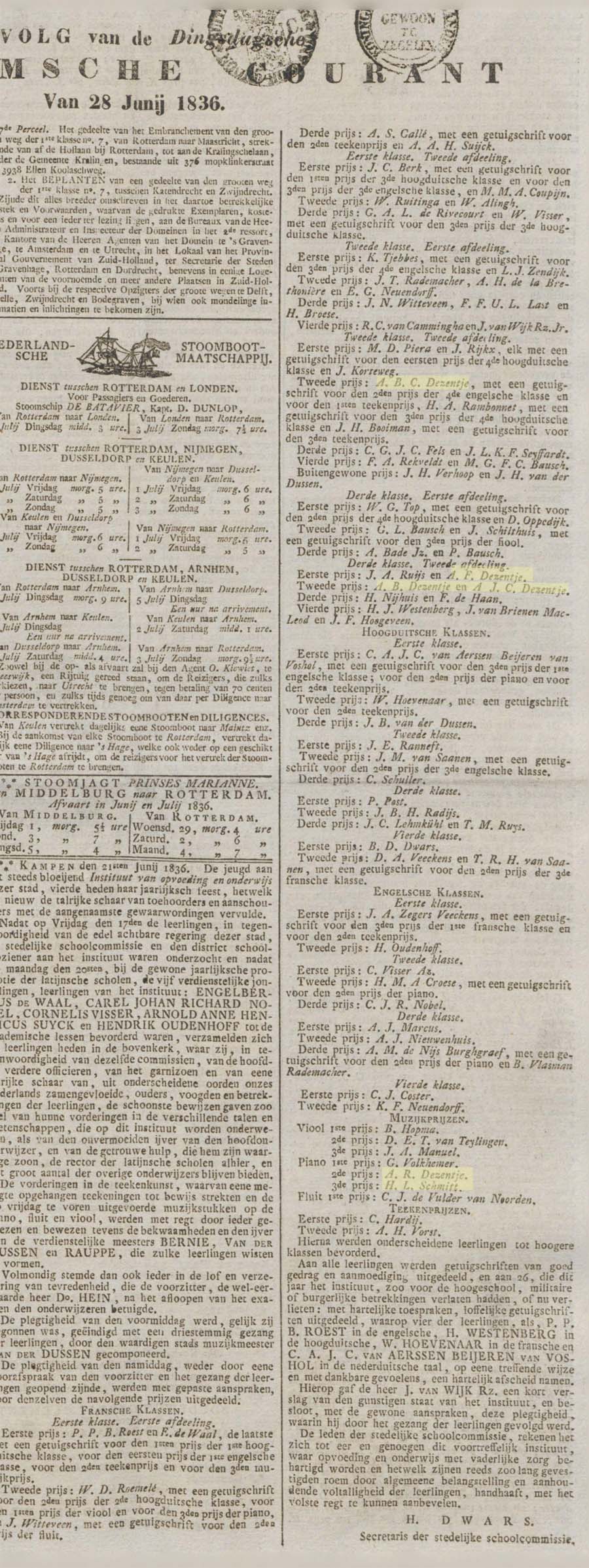In 1836 waren de 5 oudste zoons op de Fransche School te Kampen (ABC, AR, AB, AF, AJC).17