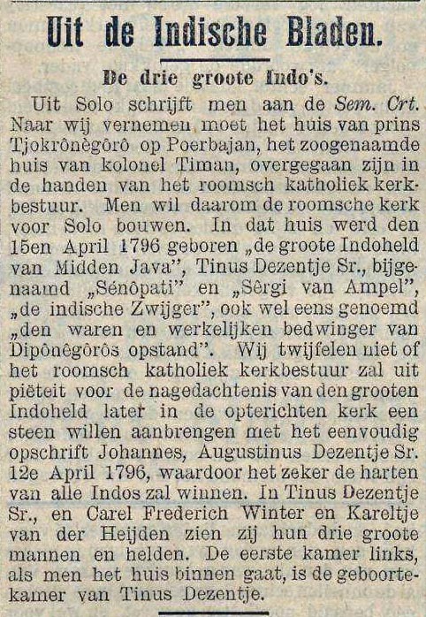 Een goed geïnformeerde bron was de Solosche Javaander in  de Locomotief van 5 maart 1903, die 27 kinderen noemde en zeer waarschijnlijk was hij iemand uit de familie.  Algemeen zei de familie dat alle geboren Dezentjé  sinds 1856 (zus Tinus overlijdt)  nazaten zijn van Tinus.