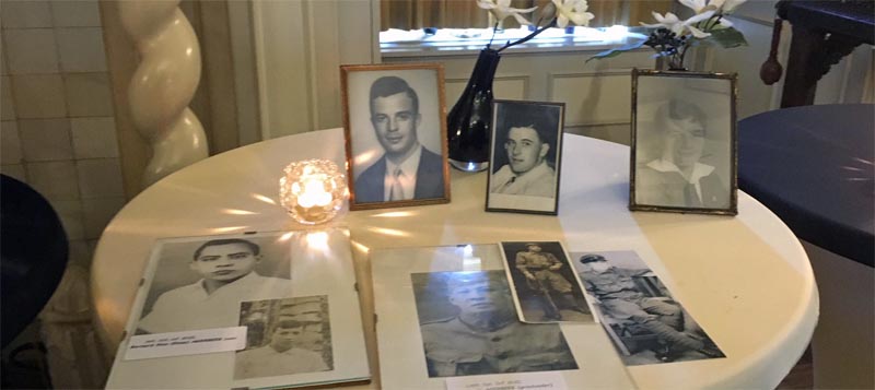 Links: foto’s van de broers van Agerbeek  Rechts: Cato Cramer haar oom van Gerrevink herdenkend.