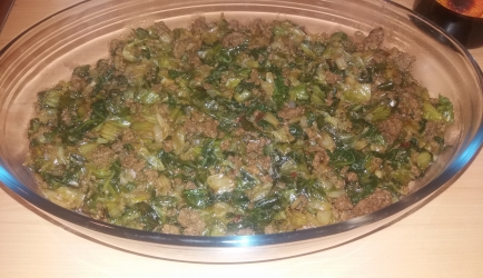 Ovenschotel Indische andijvie met gehakt spekjes en aardappelstamp Smulweb.nl