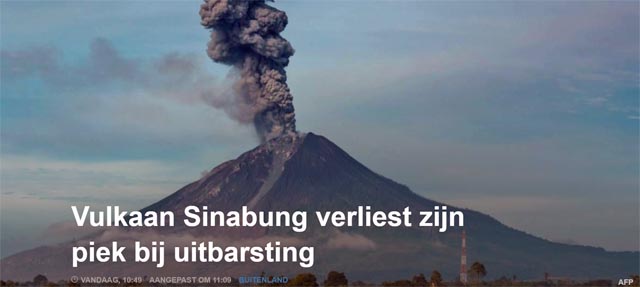 ** vulkaan Sinabung heeft de piek van de berg weggeblazen.