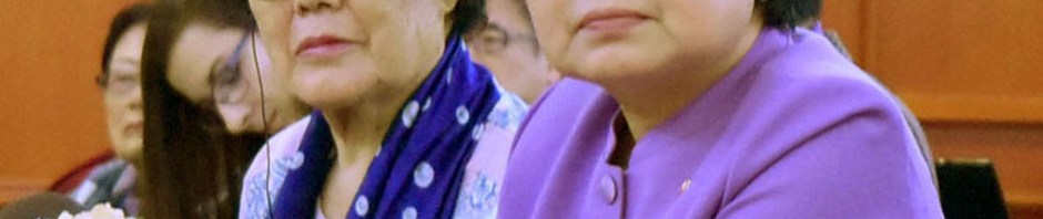 South Korean Gender Equality and Family Minister Chung Hyun-back (right) attends a meeting in Seoul in November to promote documents related to ‘comfort women’ to be nominated for UNESCO’s Memory of the World Register, along with Lee Yong-soo, who was forced to work in Japanese wartime military brothels. | KYODO