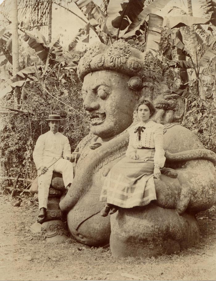 De dame op de foto die hij mij stuurde is zijn oma, Willemina Gabriele MULLER, geboren 1880 te Batavia, overleden 1960 te Port Albuni, Canada. Zij is de dochter van Majoor Daniel WIllem MULLER geboren te Den Haag en Gabrielle Delphine DESCHAUX, mijn groot-groottante. De man is volgens de tekst bij de foto een vriend, maar wie weten wij niet