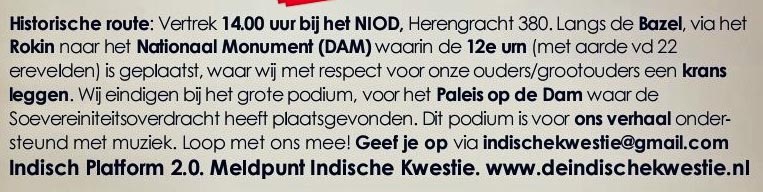 Met Gevoelens voor de Indische Gemeenschap en hopende dat er een grote opkomst in Amsterdam is met Indische kwestie!!!!!