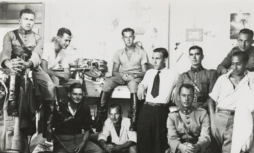 Foto:  Een klein aantal cadetten van de KMA weigerde de erewoordverklaring te tekenen. Zij en de stoker staan hier op de foto in Kamp Juliusburg. Allen zijn afkomstig uit Nederlands-Indië. (collectie Museum Bronbeek)