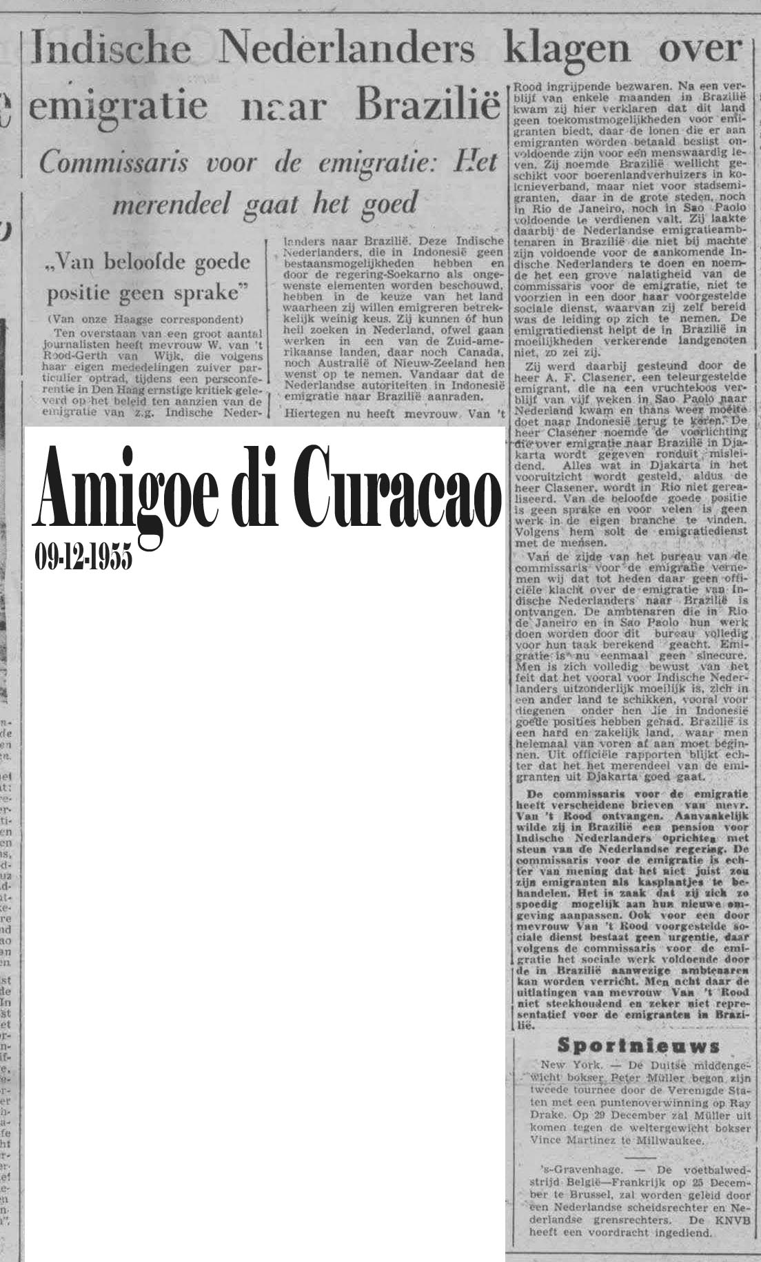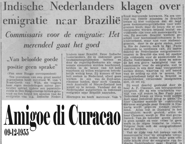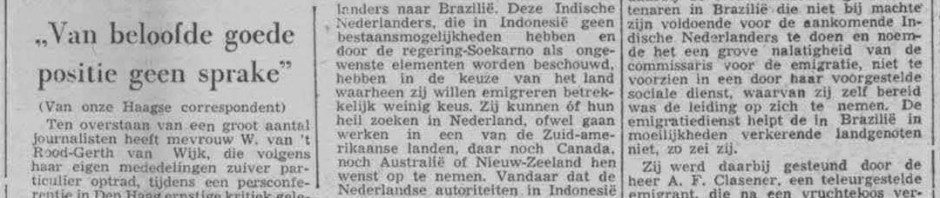 Een andere krant van 28 September 1954 “Emigratie naar Brazilië van Indische Nederlanders”