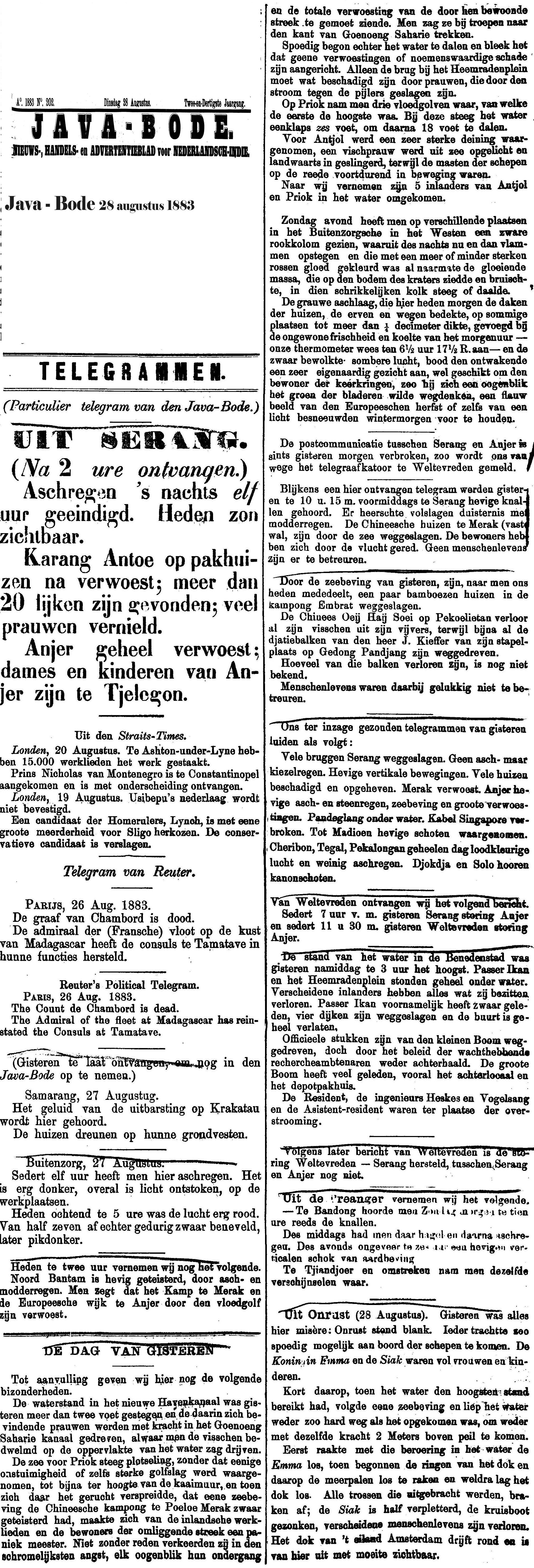 Krakatau, 135 jaar geleden, maandag 27 augustus 1883 .