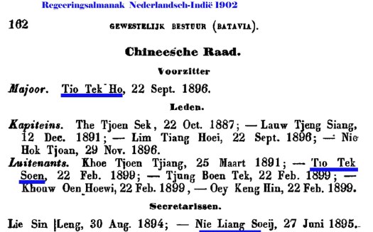 En in Indië: Eind 1619 woonden in Batavia ongeveer 400 Chinezen waarover een Kapitein-Chinees werd benoemd om civiele zaken onder zijn landgenoten af te doen, met uitzondering van zeer belangrijke welke naar de Nederlandse rechter moesten worden verwezen. In artikel 4 van de instructie van 1632 werd aanbevolen dat “Indiaansche natiën vriendelijk getracteerd worden, (…) zonderling de Chineezen, dewelke met alle beleefdheid dienen gewonnen om den handel van dezelve op Batavia meer en meer te doen vermeerderen.” In een missive van 13 september 1635 adviseerden de Heeren-XVII “Batavia van allerhande Indische natiën en bijzonder de Chineezen (…) te doen frequenteren en bewonen.” Colenbrander 1919, I, 501: “de Chinesen worden [in Bantam] seer nauwe bewaert.” (…) “waertoe by de voornaemste Chinesen uyt alle haere naem voorgedragen is eenen genaempt Bencon”. Colenbrander 1921, III, 541. Deze Bencon was een vriend en toeverlaat van Coen.” Blussé 1989, 115.