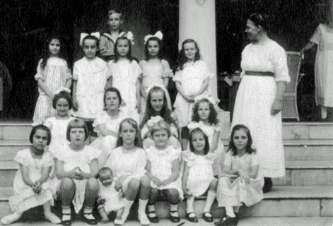 Mijn moeders jongere zusje Dieuwke (Djo) Aninga is vandaag 10 jaar geworden. Ze kreeg een grote pop voor haar verjaardag en haar verjaardag werd groots gevierd. Ze mocht 13 vriendinnetjes uitnodigen. Bovenaan staat Oene Aninga, het broertje van mijn moeder en het meisje met het lange haar middenin de groep is mijn moeder. Klaaske (Klas). Herkent iemand iets of iemand?