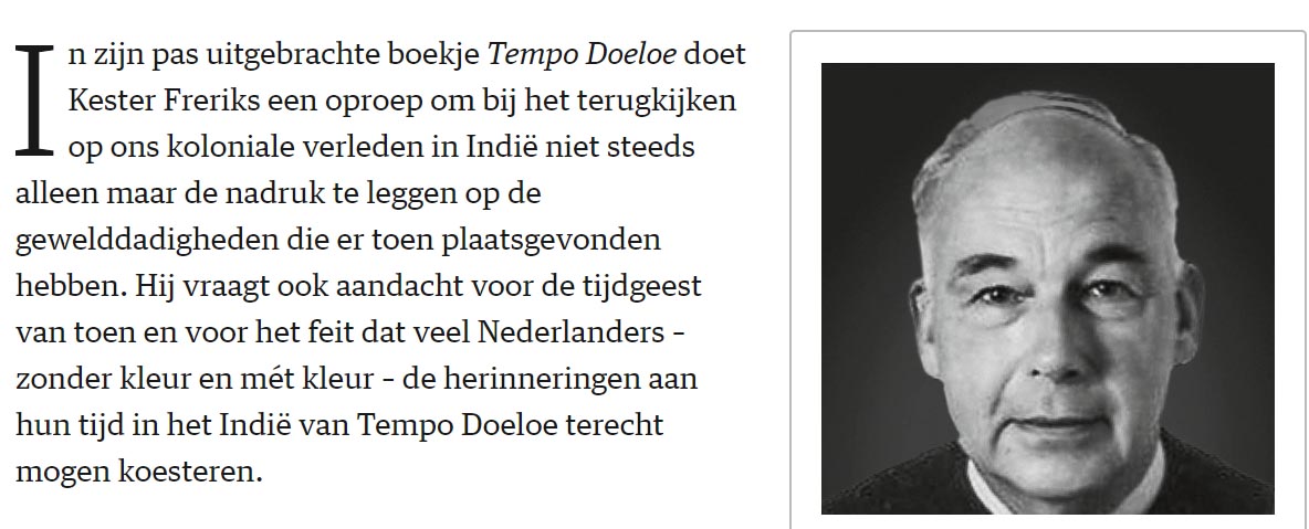 Hij is net als Kester Freriks een kind van de nog nooit gepresenteerde rekening, Nederlands Indie in haar volle omvang te zien en beoordelen. Ze zijn steken gebleven in Tempo Doelloos.